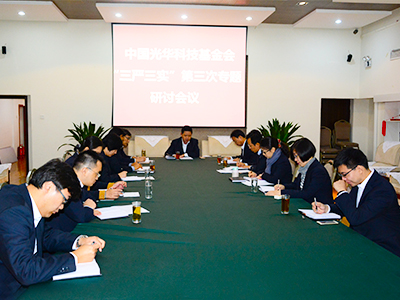 11月5日上午,基金会召开“三严三实”专题教育第三次专题学习研讨会,围绕“严以用权,真抓实干,做踏实肯干的光华人” 进行学习讨论。基金会党组书记任晋阳同志主持,党组成员、各部门主任及党支部同志共同参与了学习。